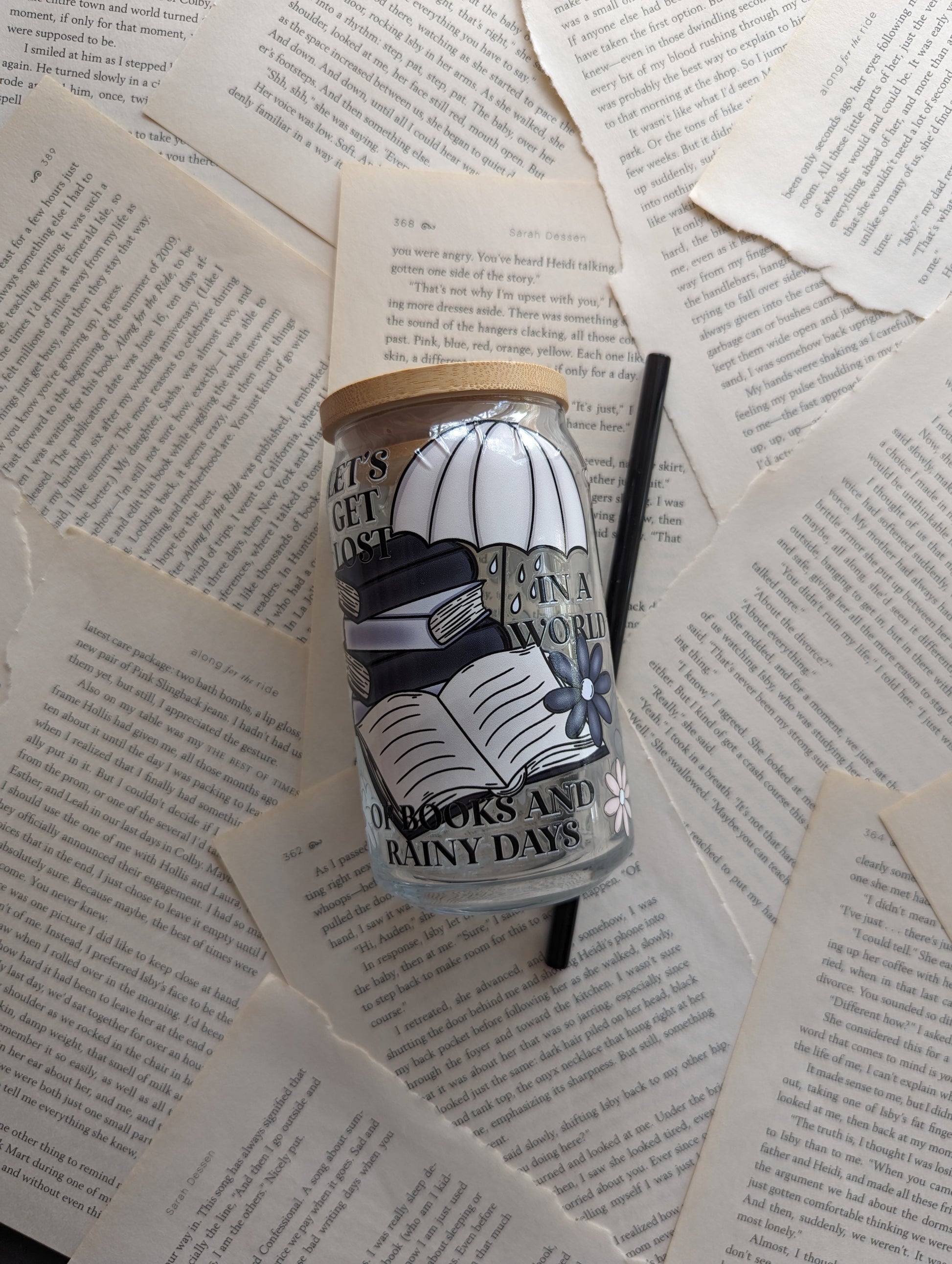 16oz Beer Can Glass with bamboo lid and glass straw. Perfect for water, iced coffee or smoothies!