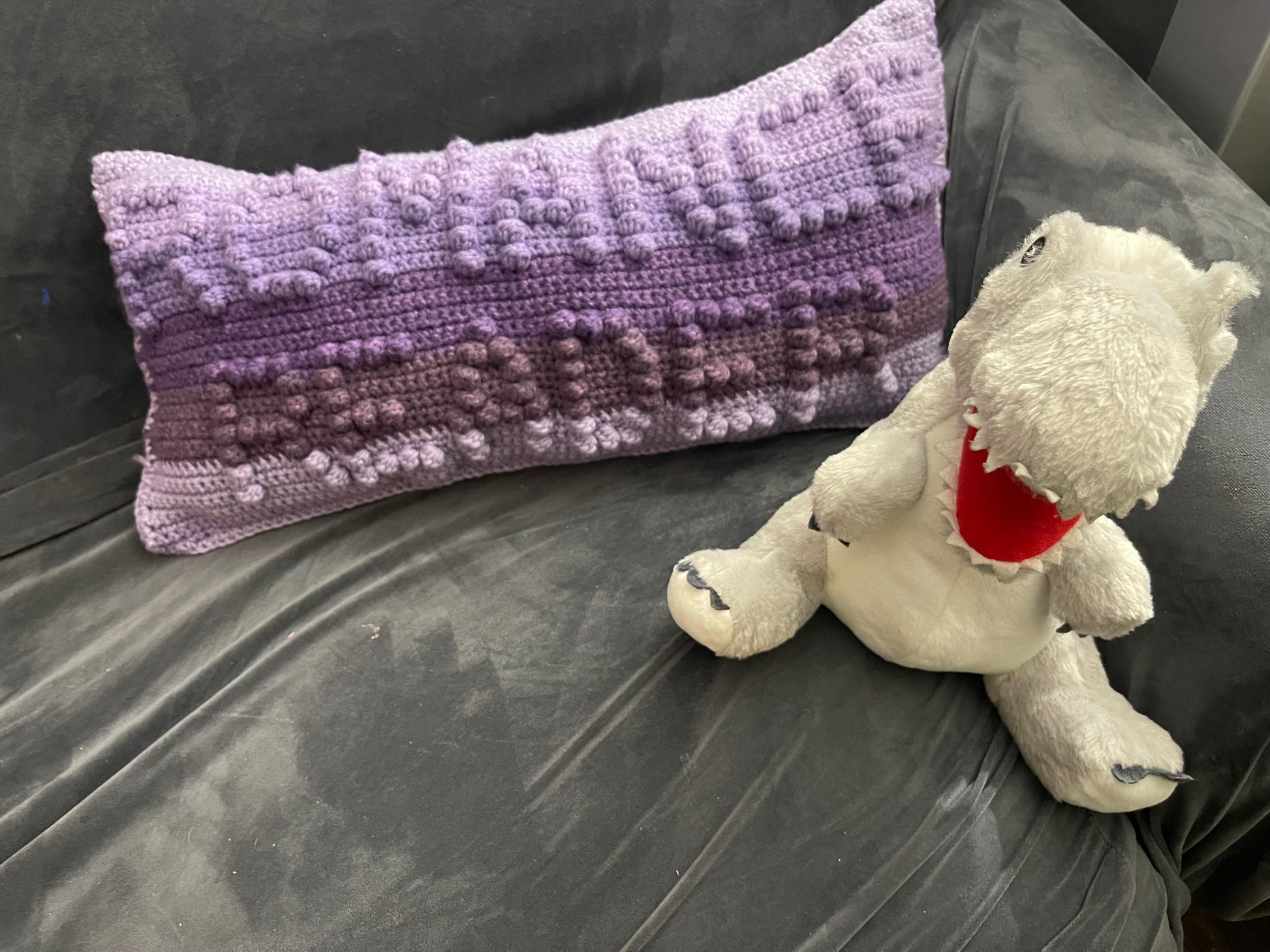 Crochet the perfect cuddly reading companion that will support your book or reading device! Stylish enough to make a cute couch or chair decoration when not in use.